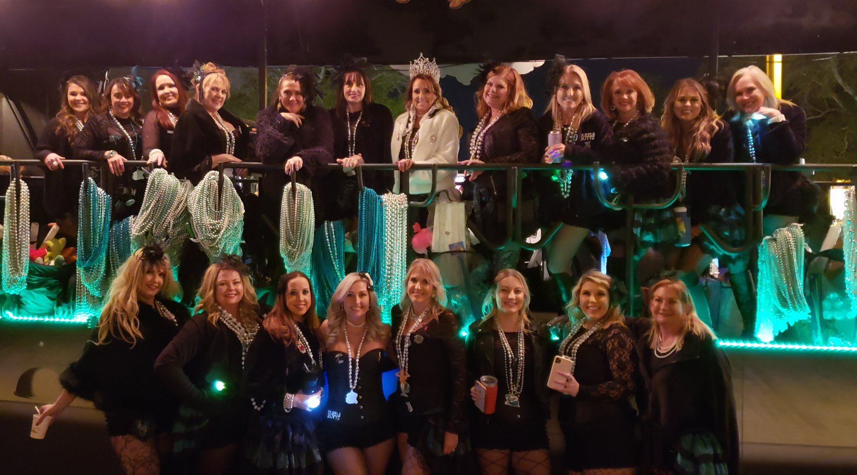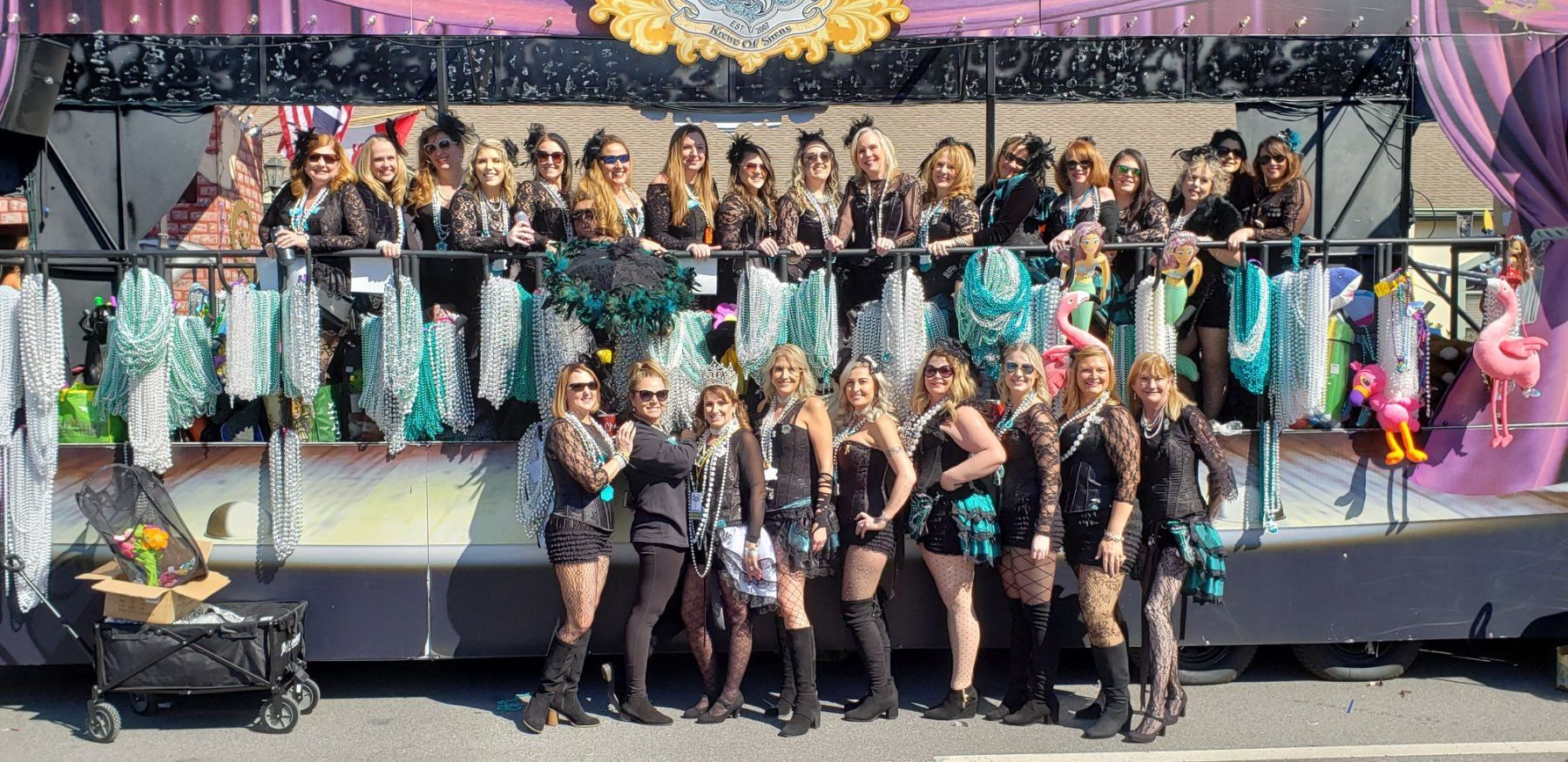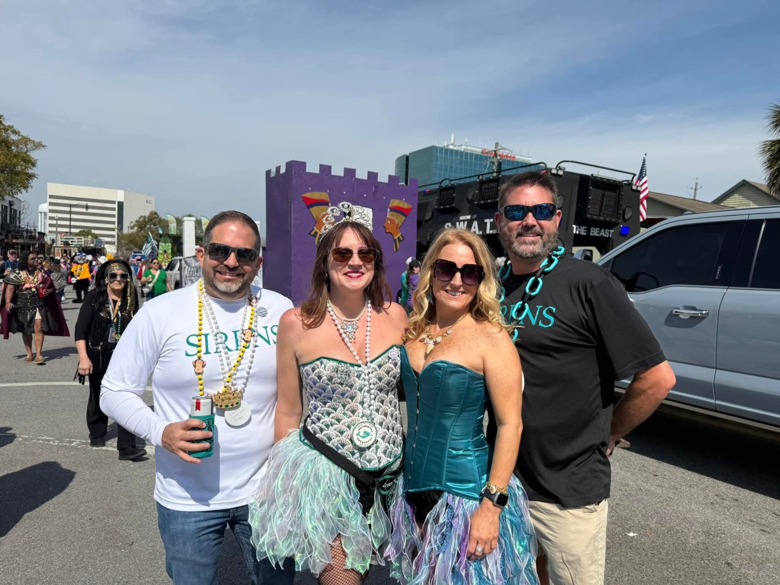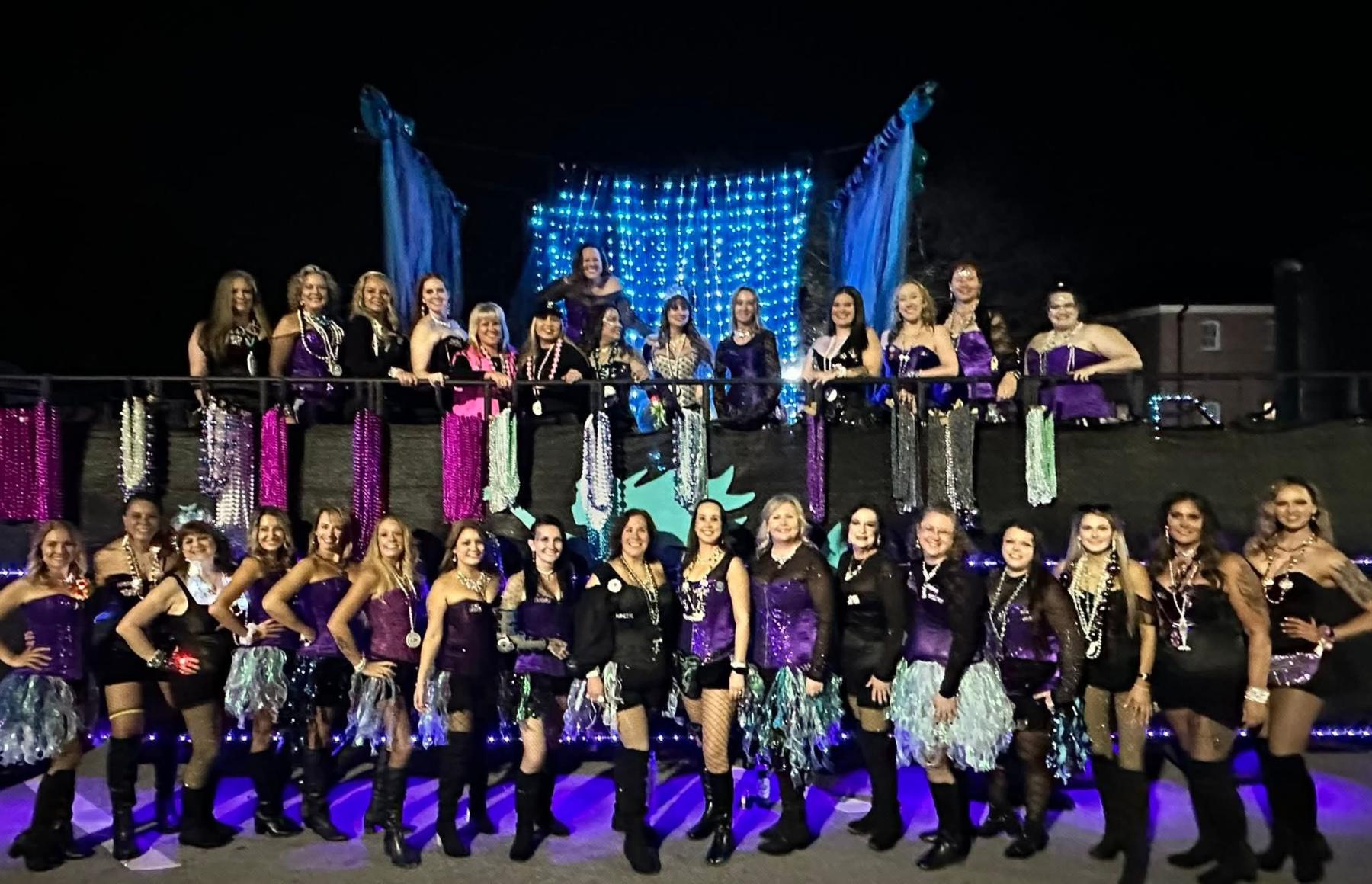 From twinkling holiday lights to the sparkle of Mardi Gras, the Krewe of Sirens makes waves all year long. We proudly roll in the Cox Pensacola Christmas Parade, the Lafitte Illuminated Parade, the Pensacola Grand Mardi Gras Parade, and the Krewe of Wrecks Pensacola Beach Parade—bringing our signature Sirens glam, pearls, and coastal flair to every celebration.